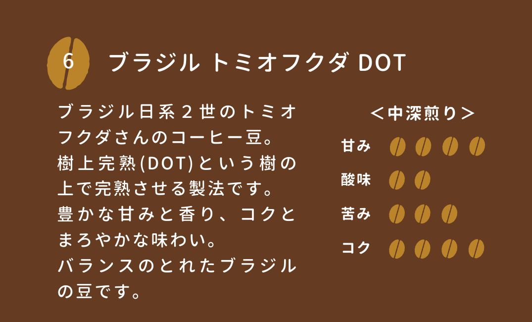 【スペシャルティコーヒー豆】ブラジル トミオフクダ DOT